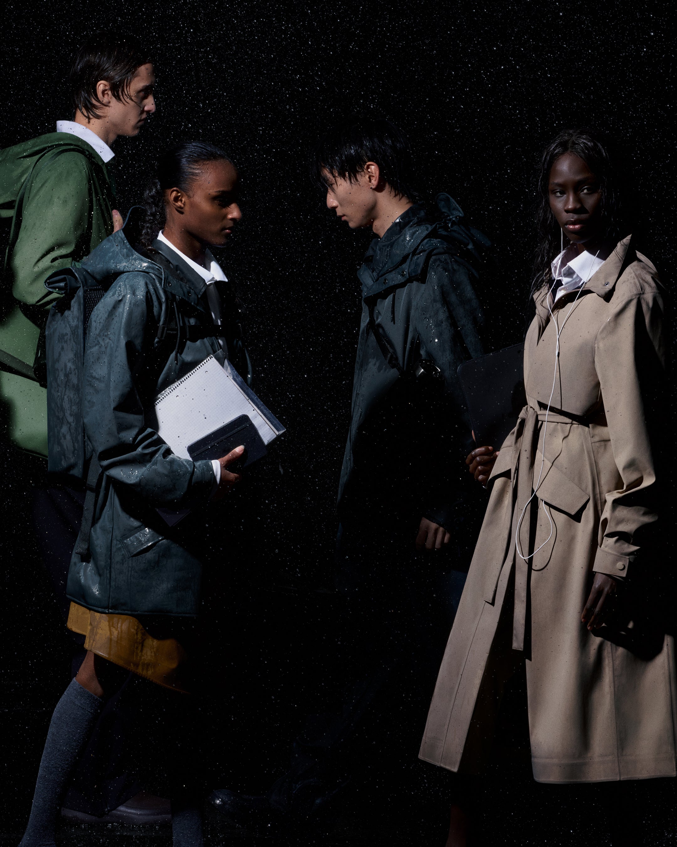 The moment. The weather. The day. The collection. All of it. On every street corner, lives intersect and paths cross. Coming or going, rain or shine. Here's what happens in just one section of the city. One collection, designed for endless routines.